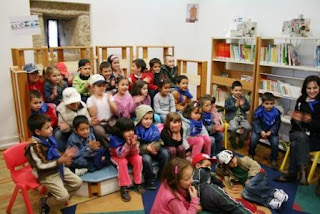 Os meninos do Centro Rural Agrupado de Tomino estiveram na nossa Biblioteca, nos dias 20 e 21 de Abril, comemorando desta forma o Dia Mundial do Livro. No total passaram pela Biblioteca cerca de 170 crianças deste Agrupamento e para além de participarem na Hora do Conto, previamente definida e preparada, também exploraram outras ofertas da Biblioteca.