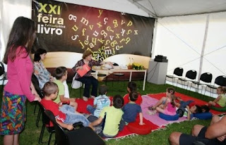 O dia mais preenchido da Feira do Livro, sábado dia 10 de Julho, começou com a Hora do conto às 11h. A já habitual Hora do Conto realizada aos sábados na Biblioteca Municipal passou para o espaço da Feira e teve uma convidada especial - Maria do Céu Nogueira. As histórias passaram por contos e rimas tradicionais retiradas dos livros da própria autora.